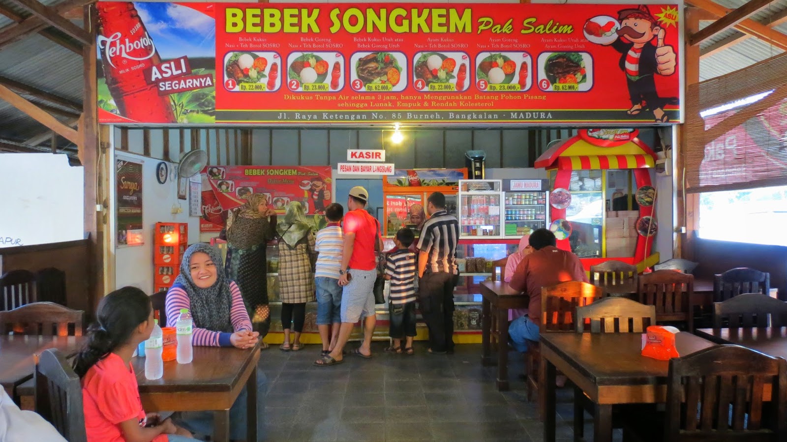 To reach Bebek Songkem we can heading to the left after crossing Suramadu Bridge, and it located in Jl. Trunojoyo 9A, Bangkalan and other restaurant is located in Jl. Raya Taddan Camplong, Sampang.