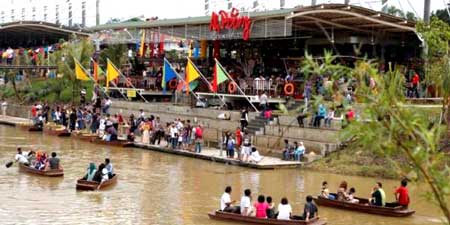 Visiting Bogor Botanical Garden is one thing. But spending the weekend in Ah Poong Market is a new experience for everyone. In terms of name, it derives from “Pasar Apung” which means the floating market. For the information, this unique place is located in Cipambuan Village and belongs to Babakan Madang Sub-District. Here is the thing in Indonesia. Instead of selling groceries, this site offers various food vendors for tourists to enjoy especially seafood. Despite the name, the food courts reside on the river bank instead of on water! Still, tourists can get a boat and ride it to explore the river on site (freely).